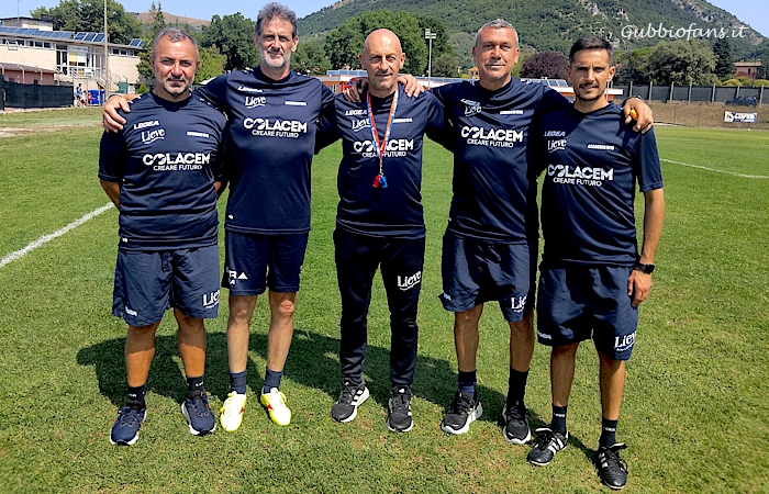 Staff tecnico: da sinistra Melino, Vecchini, il trainer Di Carlo, Mezzanotti e Mazarese