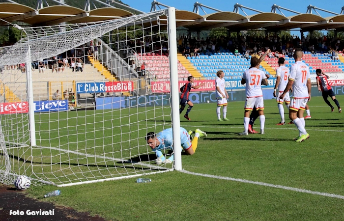 La palla si insacca angolata su colpo di testa di Di Bitonto