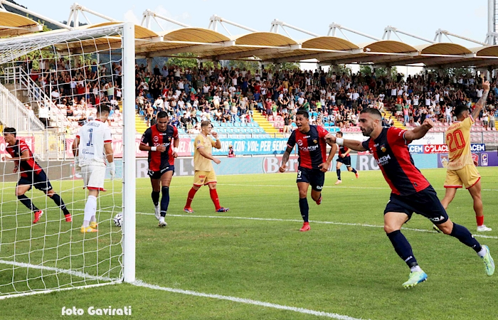 La palla va in rete su colpo di testa di Signorini: esultanza rossoblu