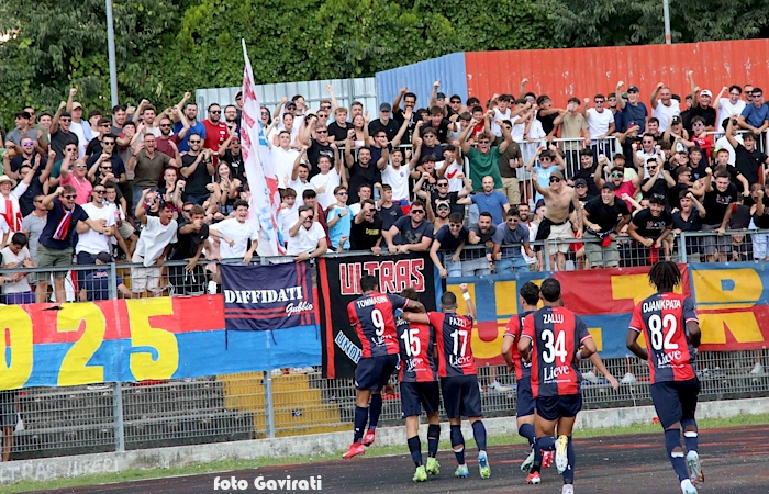 I calciatori festeggiano il gol sotto la curva eugubina