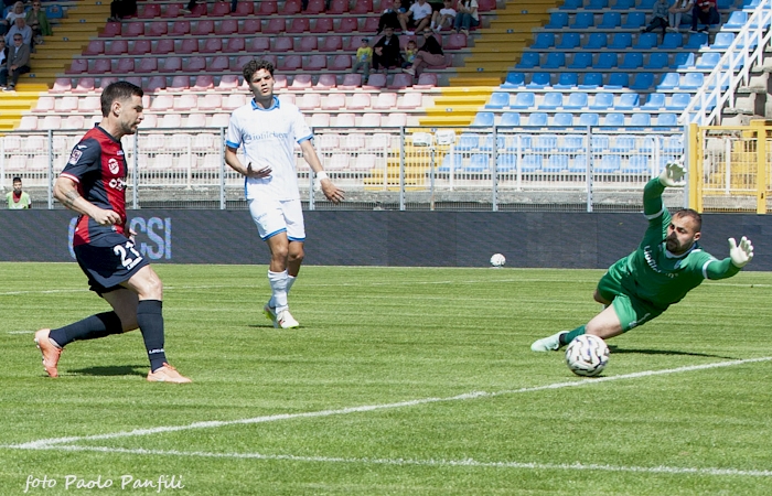 Carraro realizza il gol del vantaggio rossoblu