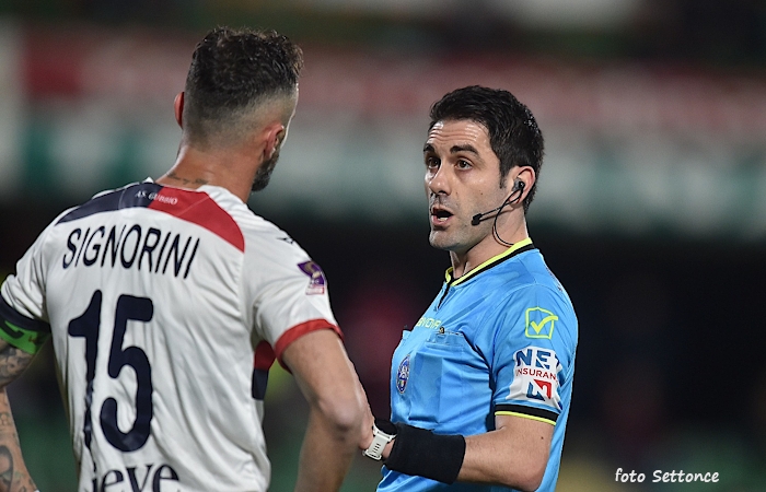 Signorini e il direttore di gara dopo il gol annullato alla Ternana dopo la revisione delle immagini al Fvs